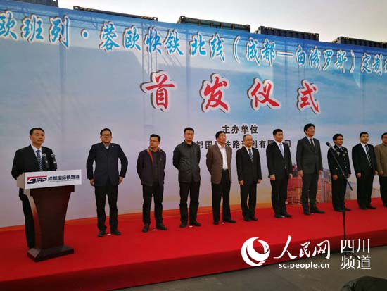 伴隨著“嗚——”的鳴笛聲,搭載著41個集裝箱貨物的中歐班列“蓉歐快鐵”從成都國際鐵路港駛出。這是一次定制班列,滿載的是吉利汽車28輛汽車的成套散件和汽車零配件,將從新疆阿拉山口出境,經哈薩克斯坦、俄羅斯,運行8866公里,預計12天后將最終抵達白俄羅斯明斯克吉利工廠。由鐵路直