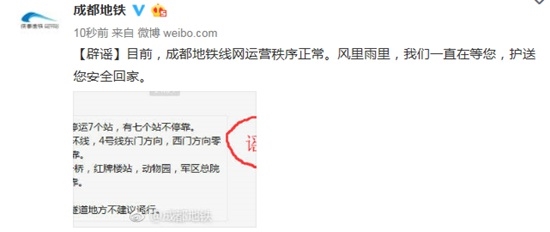 人民網成都7月2日電 (王波)今日下午成都地鐵官方微博發布消息:網上傳言:網傳地鐵因暴雨臨時關閉?成都地鐵辟謠,是假的!目前成都地鐵線網運營秩序正常。 成都地鐵:目前成都地鐵線網運營秩序正常。 網傳不實內容為:成都地鐵一號線臨時停運7個站,有七個站不?。成都地鐵2號線,7號環線,4號…[詳細]