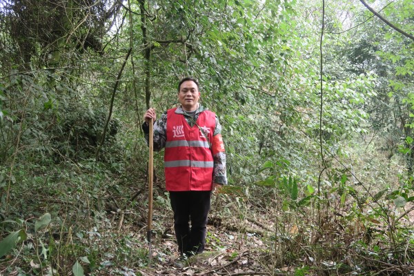 游小軍站立在山林間。賀樊麗攝 2月8日早上7時許,游小軍吃過早飯,穿上迷彩服、膠鞋,戴上森林執勤袖章,背上水壺,拿著砍刀,又開始了一天的巡山護林工作。 這片森林,位于明月山系廣安市鄰水縣境內。半小時后,游小軍便進入林場深處。此時的山間,天氣寒冷、煙霧茫茫。他手持砍刀,不時…