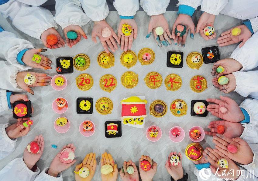 在老師的指導下,孩子們和面、捏造型、拼裝、裝飾……很快,一只只“小老虎”便制作出來了。