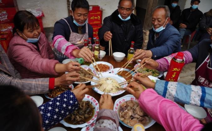 如今,四川省涼山彝族自治州會理市小黑箐鎮岔河遇上婚喪之事推行的九大碗筵席,是為了厲行節約,杜絕攀比和奢侈之風進行的移風易俗活動。