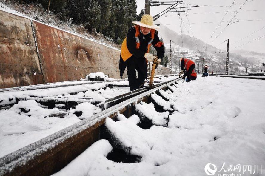 為確保鐵路運輸安全暢通,鐵路部門迅速啟動冰雪凝凍應急響應,越西、普雄車間迅速出動“黨員突擊隊”和“青年突擊隊”,隊員們攜帶除雪鹽、防凍油、鋼釬等用品奔赴各站,與車站管理人員、鐵路職工一起清掃道岔區段、線路間覆蓋的積雪,涂抹防凍油,確保行車設備正常使用。