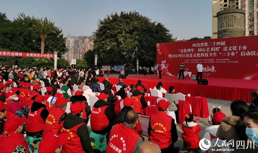 萬里長江第一城是宜賓,萬里長江第一縣是江安。1月30日,農歷正月初九,四川省第二十四屆文化列車·同心藝術團送文化下鄉活動來到了這座美麗的江畔小城,為當地群眾帶去了藝術的魅力,增添了節日的歡樂。同時,這個以“文化進萬家、新春走基層”為主題的文化惠民活動,將在接下來的幾天里在宜賓市和瀘州市的各個區縣巡回開展。