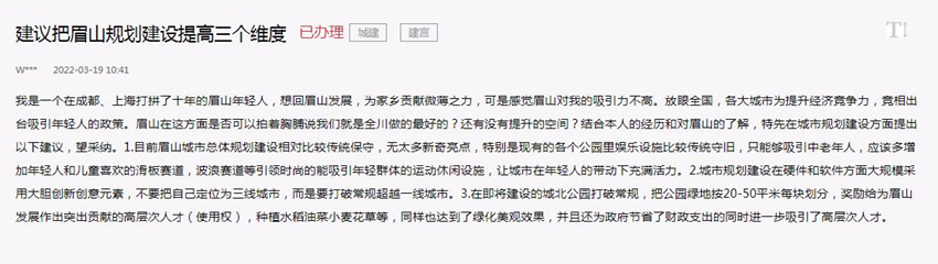人民網成都5月16日電 (彭茜)“我是一個在成都、上海打拼了十年的眉山年輕人,想回眉山發展,為家鄉貢獻微薄之力,可是感覺眉山對我的吸引力不高。放眼全國,各大城市為提升經濟競爭力,競相出臺吸引年輕人的政策?!苯?,有四川省眉山市網友通過人民網…