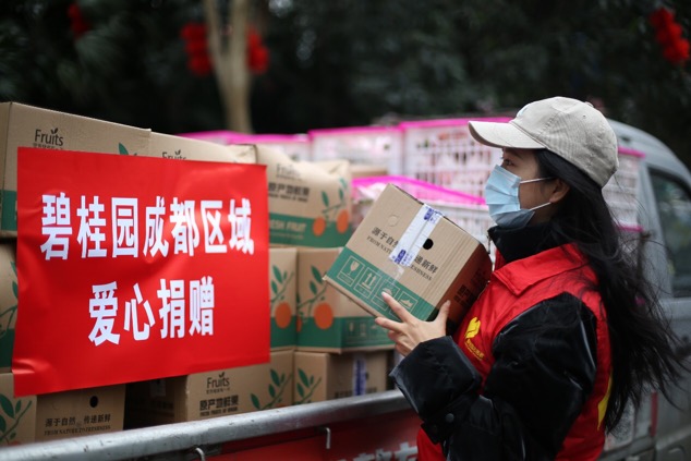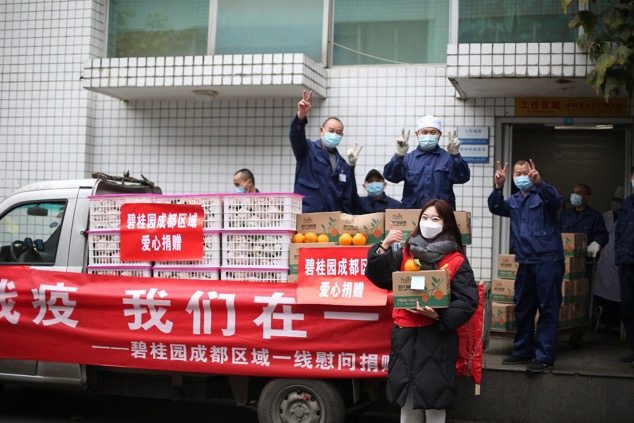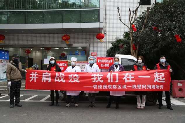 人民網成都2月16日電 (王軍)“并肩戰疫,我們在一起!2月15日上午,一輛裝滿剛剛從蒲江縣摘下的春見耙耙柑的貨車,來到四川省人民醫院營養科大樓下,這是碧桂園成都區域捐贈的愛心物資,致敬一線醫護人員。