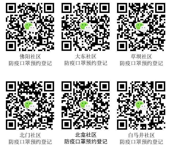 注意:各社區居民可以掃描自已居住社區二維碼登錄訂購,每戶每2天可指定1人登錄1次,預約1個口罩每個口罩2元,由專人配送,開放時間為每日8:00至14:00。