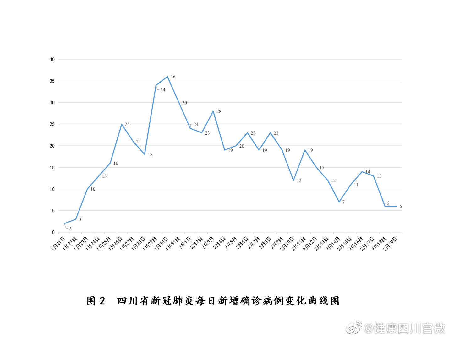 人民網成都2月20日電 (王波)記者剛剛從四川省衛健委獲悉,2月19日0-24時,四川省新型冠狀病毒肺炎新增確診病例6例,新增疑似病例26例,新增治愈出院病例21例,無新增死亡病例。