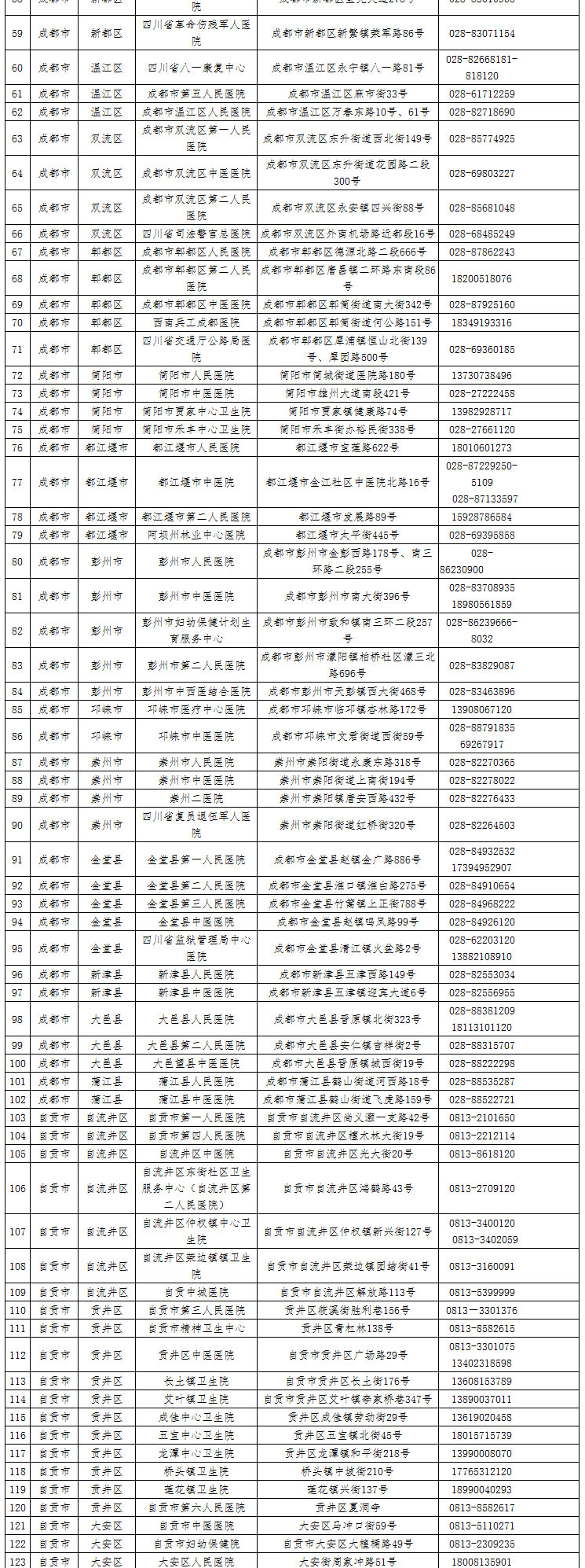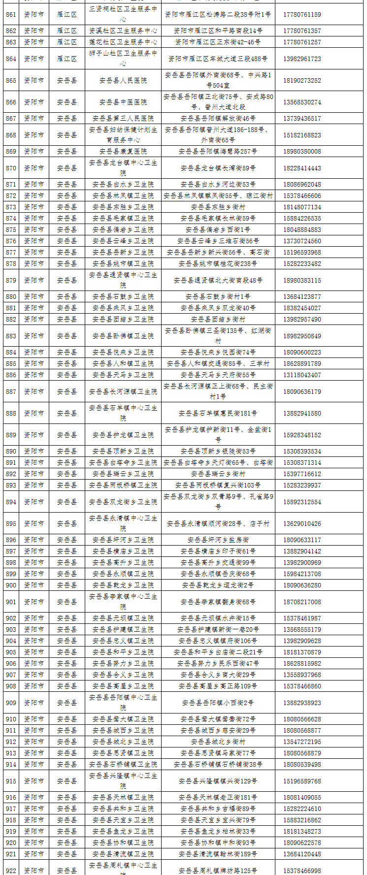 人民網成都2月28日電 根據新冠肺炎疫情形勢和醫療救治工作需要,四川省重新調整了發熱門診布局。為方便人民群眾就診就醫,2月27日,四川省衛健委公布了1051家發熱門診信息。具體如下: