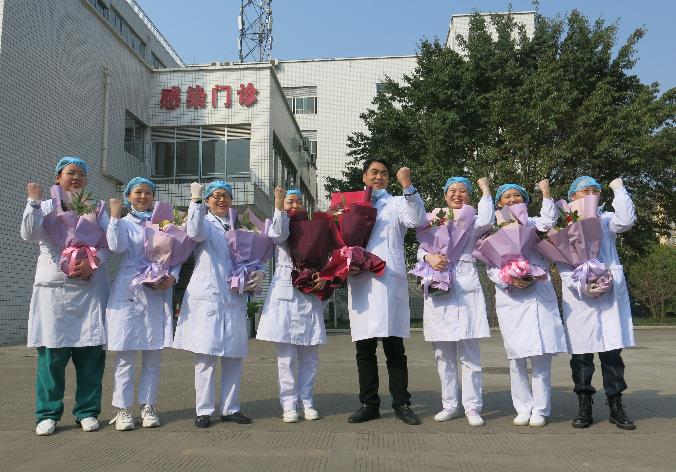 送走最后一名治愈者,該院新冠肺炎治療團隊的醫護人員如釋重負,長長地舒了一口氣。他們接過同事送上的一捧捧鮮花,揭下戴在臉上的一個個口罩,看著春日里那一樹樹繁花,眼含熱淚卻又滿臉歡笑,感慨、激動之情溢于言表……