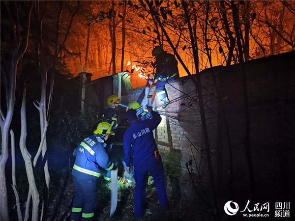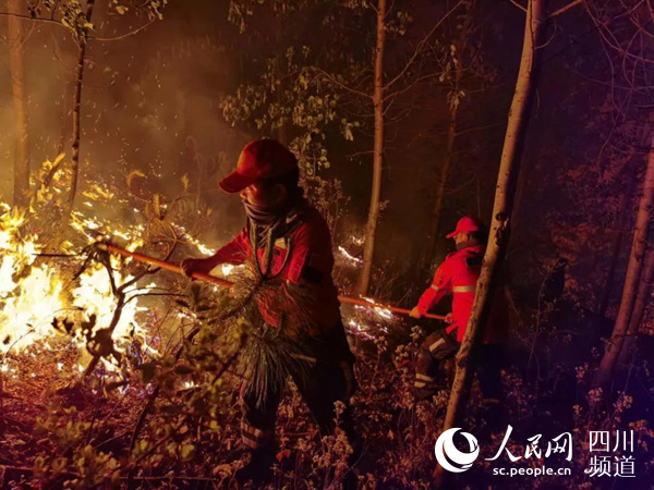 火場前線,撲救人員全力撲火。西昌市融媒體中心供圖