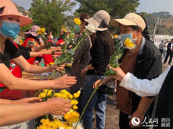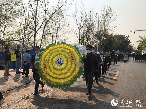 西昌市民自發前往殯儀館為救火犧牲的英雄獻花。西昌市融媒體中心供圖