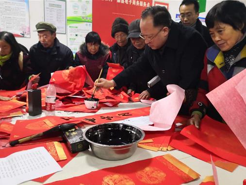 四川省作協黨組書記侯志明同志(執筆者)為村民撰寫春聯。稅清靜攝