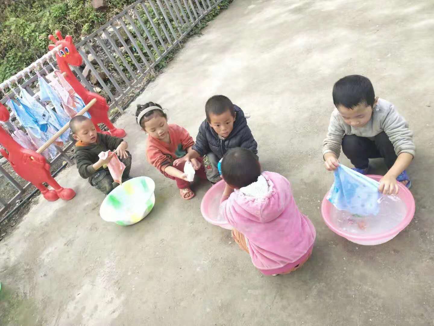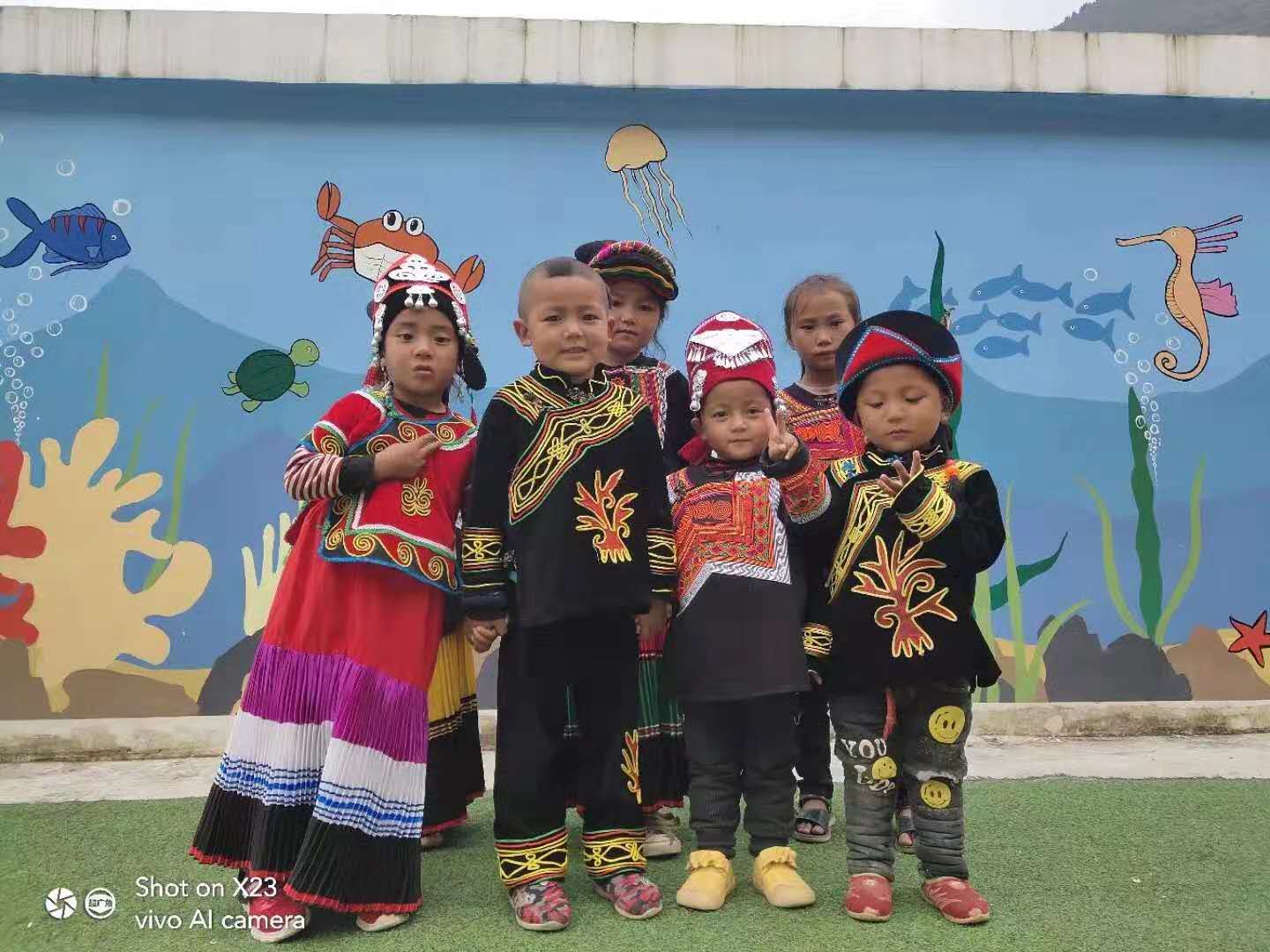 大概三四十分鐘的車程,我們到了瓦扎124組幼教點,這個幼教點緊靠村委會公路邊,房子是新建的,不僅有幼兒活動室,還有午睡室、廚房,水沖式廁所,大大的操場四周還修起了堅固的圍墻?粗矍暗囊荒,我更加深切地感受到精準扶貧政策給彝族同胞帶來的實實在在的幫助。記得我第一次來這個幼教點時,幼教點的位置還在更上面一點,破舊的兩間土坯房,墻上只有A4紙大的兩扇木窗,黑瓦屋頂一下雨就漏水,孩子們的桌子就搭在泥土地面上,晴裹灰雨裹泥,屋內陰暗潮濕,屋外也只有巴掌大的一塊活動壩子。有一次,我去檢查工作,正碰到孩子們蓬頭垢面地在幼教點附近的核桃樹下草叢中找核桃吃。