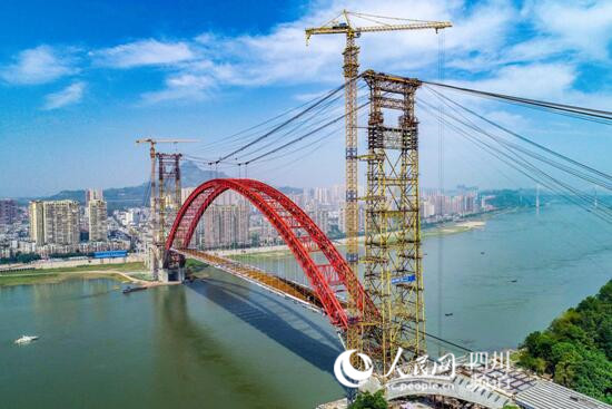 圖為瀘州長江公路大橋主梁成功合龍。四川省交通運輸廳供圖