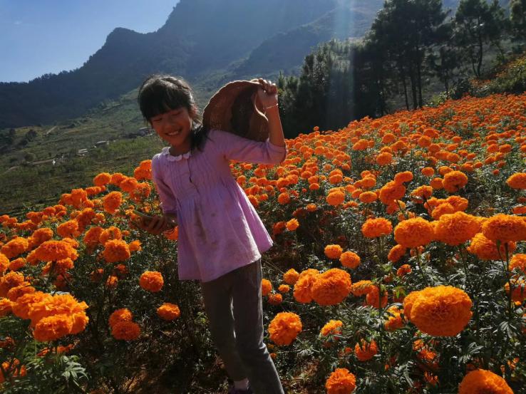 仙山村萬壽菊的花海中幸?蓯鄣男」媚。鄧國良供圖