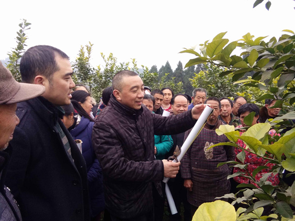 通過學習考察,吸取先進村社的先進經驗,沈浩強結合飛鳳村的實際,大力推進主導產業示范園區建設。他以國土整理項目為契機,整合多方資源,創新“專業組織+集體經濟+黨員示范+群眾入股”模式,建成了以晚熟柑橘和生態檸檬為主導的兩個標準化農業產業示范園區,并通過園區示范、業主帶動,連片發展等方式將種植規模達到1000畝以上。在他的動員下,夫妻二人在外打工、每月可掙10000元以上的楊四軍,看到村里的變化和發展前景,毅然回村流轉150畝地發展晚熟柑橘,并在柑橘林下喂養1000只鴨,還套種辣椒,第一年就實現了營收平衡。果園投產后,預計每畝可達萬元的收入。