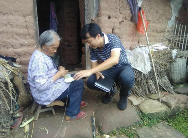 周敏(右)勸解銀河村4社88歲五保戶鐘孝秀奶奶拆除老舊不安全土胚房,新建安全住房。