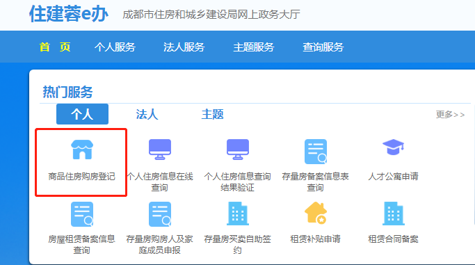 1、登錄住建蓉e辦,點擊“商品住房購房登記”;