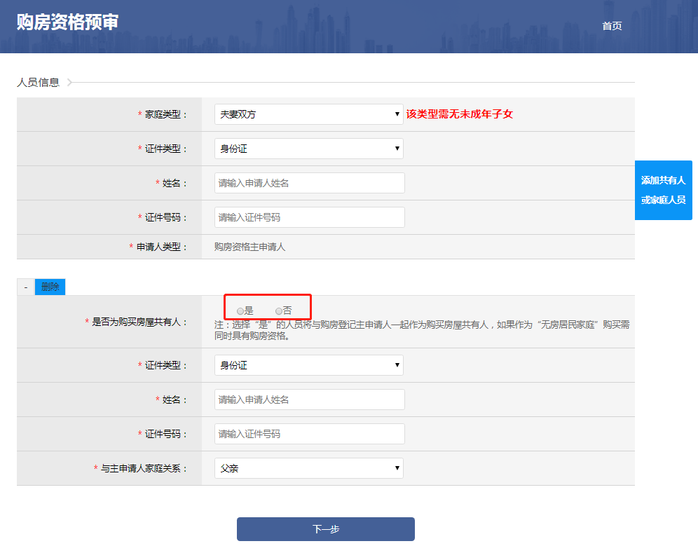 5、如多人共同購房,需在“是否為購房房屋共有人”勾選“是”;