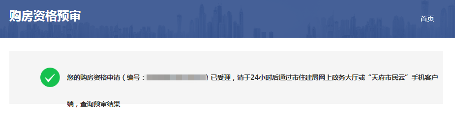 8、購房資格預審申請成功,系統自動審核并生成購房資格申請編碼。