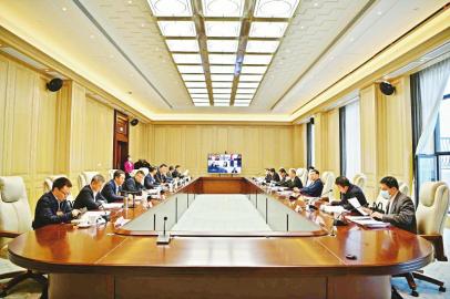 遠程參會。1月29日下午,特邀2組所在的會議室內,因為疫情原因無法到現場參會的港澳委員通過網絡視頻會議系統,與大家溝通交流。 四川日報全媒體記者吳楓攝