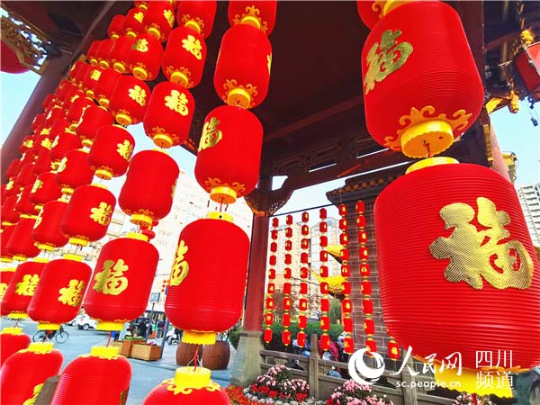 紅燈送福來,春意滿成都。人民網 劉海天攝