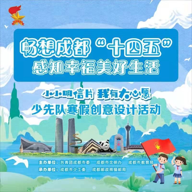 據悉,2021年1月,成都的少先隊員們開啟了豐富多彩的寒假生活。在4位全國知名兒童文學作家的啟迪下,少先隊員們暢想成都“十四五”發展,憧憬幸福美好生活,描繪童心中的未來成都!班洁健币矤渴中茇堗]局“YOYO”,一同向少先隊員們發出了繪畫美好家鄉明信片的邀請。成都紅領巾們還把自己和小伙伴、爸爸媽媽共同創作的垃圾分類小童謠,以郵件的形式分享給了“嘟嘟”。