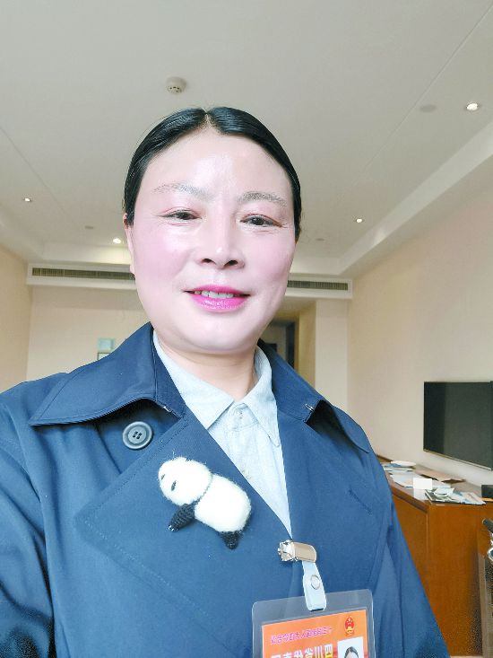 “這是村民手工制作的胸花,也是見證我們村積極轉型的產品之一!比珖舜蟠、岷江村黨委書記陶勛花戴著“熊貓”胸花前往北京參加兩會,她說,村民都很期待看到自己的產品從鄉村走向首都,也希望她在北京多拍幾張戴著胸花的照片發回來。