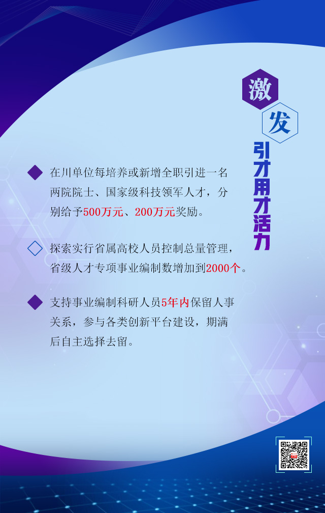 人民網成都6月23日電 (李強強)為營造一流創新生態,激勵科技人員創新創造,深入推進創新驅動引領高質量發展,6月22日,四川省政府出臺《關于進一步支持科技創新的若干政策》(簡稱“科創十條”)。