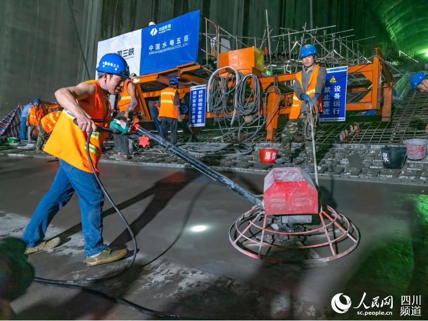 泄洪洞龍落尾底板收面,工人正在抹面,使混凝土平整光滑。劉濤攝