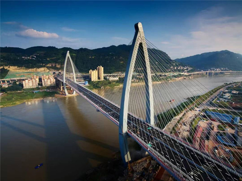 “魚躍長江”宜賓市鹽坪壩長江大橋建成通車。四川公路設計院供圖