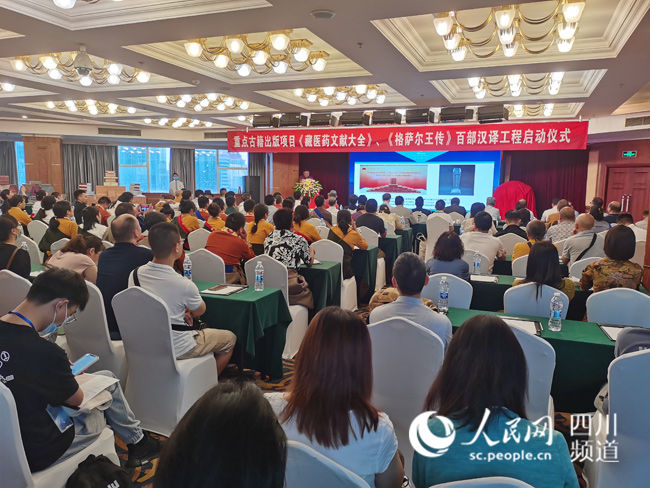 人民網成都7月8日電 (劉海天)今天,“重點古籍出版項目《藏醫藥文獻大全》和《格薩爾王傳》百部漢譯工程啟動儀式”在四川成都舉行。