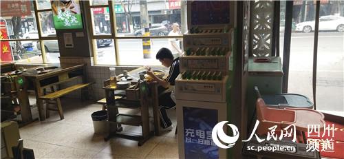 一名年輕小伙正在店里吃面。人民網 記者李平攝