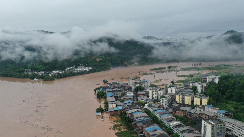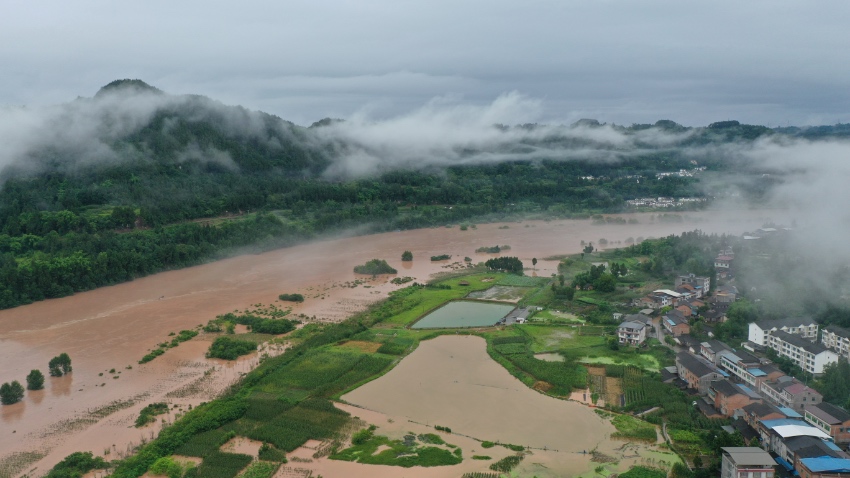 巴中市通江縣河水水位持續上漲。巴中市委宣傳部供圖