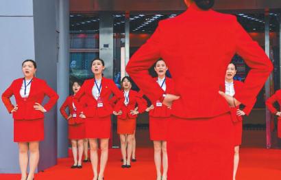 7月7日早上8點半,講解員們在開館前進行統一練習,她們每天如此,以便以最好的狀態迎接觀眾。