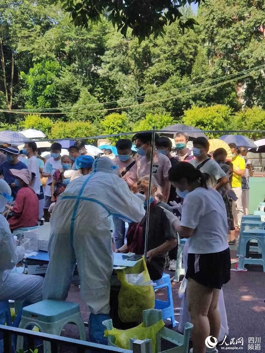 “來,張嘴!很好,下一個……”7月29日,在成都青羊區西南財經大學附屬小學(光華)小區的咽拭子采集點,一名個子很高的“大白”在人群中格外顯眼。