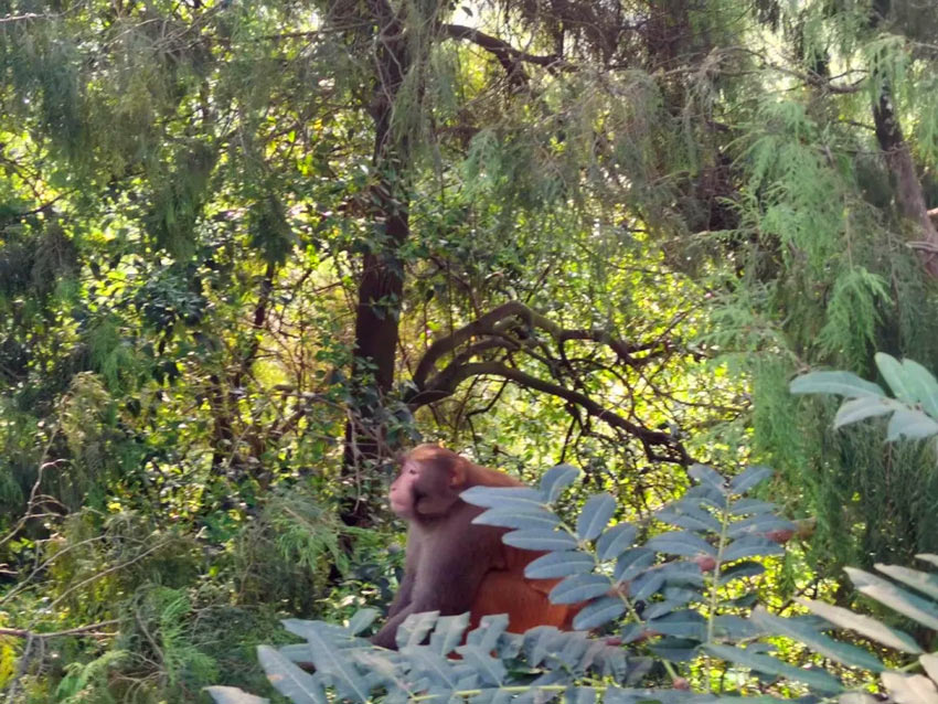 胖猴在林子里玩得很開心。龍泉驛區融媒體中心供圖