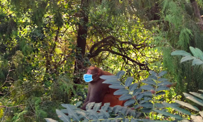 胖猴被熱情的網友修圖戴上了口罩。龍泉驛區融媒體中心供圖