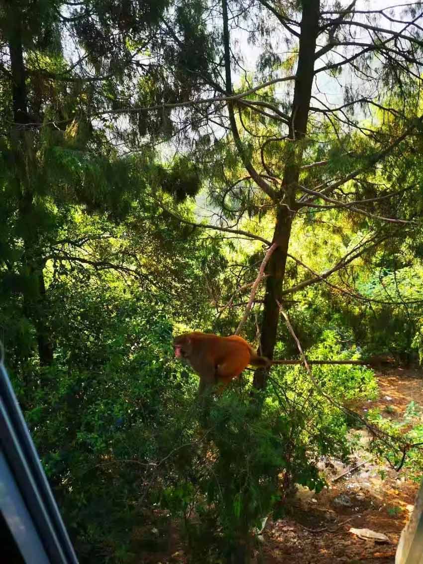 該工作人員說,他當天早上準備出門巡山的時候,在管護站旁邊偶遇了這只胖乎乎的猴子。這只胖猴看到人類,它絲毫沒有要離開的意思,反而是悠然自得地在樹上上躥下跳,大概過了好幾分鐘后才盡興離開。
