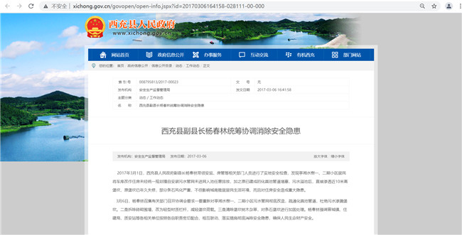 西充縣人民政府網站截圖:2017年當地關注此堡坎動態的消息。