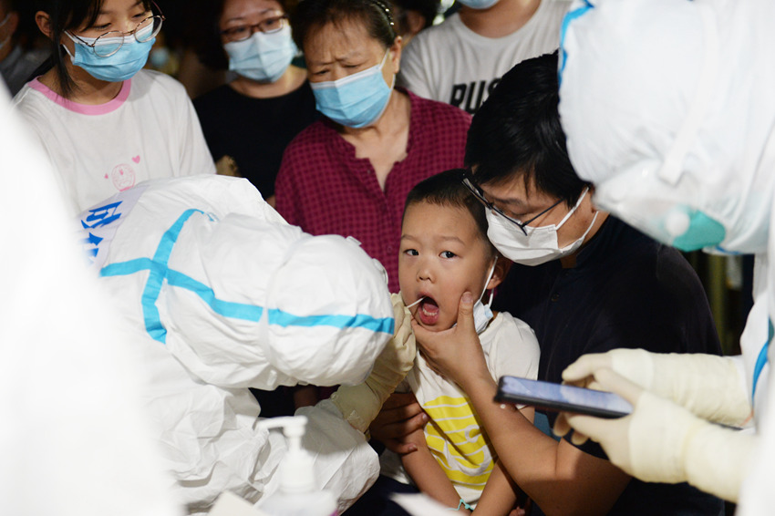 起床后,蕓蕓便和媽媽一起,排隊進行了核酸檢測!耙簧衔绱蛄私300個電話,用完了4個充電寶的電!笔蚪值郎鐓^工作人員回憶,為保障核酸檢測“應檢盡檢、不漏一戶、不少一人”,街道聯合社區組織黨員干部、社區工作人員形成志愿隊伍,凝聚力量通過電話通知、業主微信群轉發、集體“掃樓”等方式,確保每一個應檢居民及時到達指定點位進行檢測。