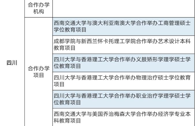 人民網成都8月16日電 (袁菡苓)據四川教育發布消息,日前,教育部公布了286個終止辦學的本科及以上層次中外合作辦學機構及項目名單。其中,四川這些中外合作辦學項目終止辦學,如下: