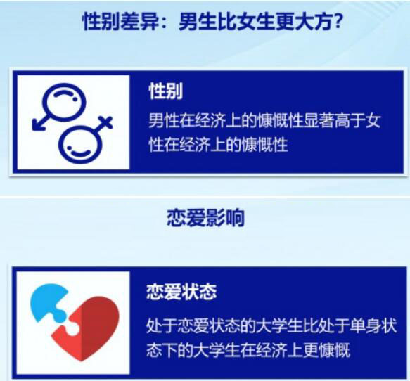 性別和戀愛狀況會影響大學生在經濟上的慷慨性,男性比女性在經濟上更慷慨;戀愛大學生比單身大學生更慷慨。