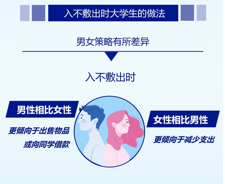 當入不敷出時,男女大學生的應對策略不同:男大學生傾向于出售物品或向同學借款,而女大學生則傾向于減少支出。