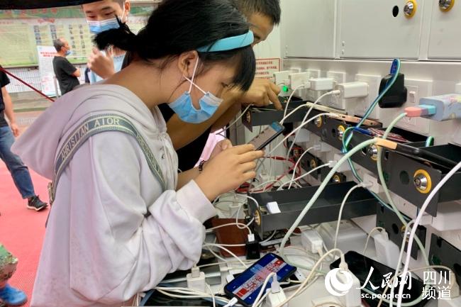 “這個東西太好了,手機馬上就能充電!”“謝謝你們想得周到!”9月16日上午10時20分,在瀘州市瀘縣龍腦橋中心小學地震災后安置點,受災群眾紛紛為自己的手機趕快充電。黃色的“方盒子”兩端有幾十個充電窗口,避險群眾用電難的問題,得到臨時緩解!巴嘏,我看有的人充了一會,可能沒充滿電,但看到身后有人排隊,就讓出充電口!