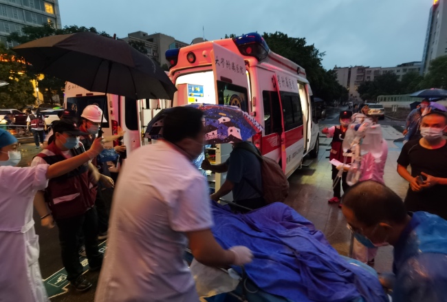 國家(四川)緊急醫學救援隊隊員到達瀘縣醫院參與救治。國家(四川)緊急醫學救援隊供圖