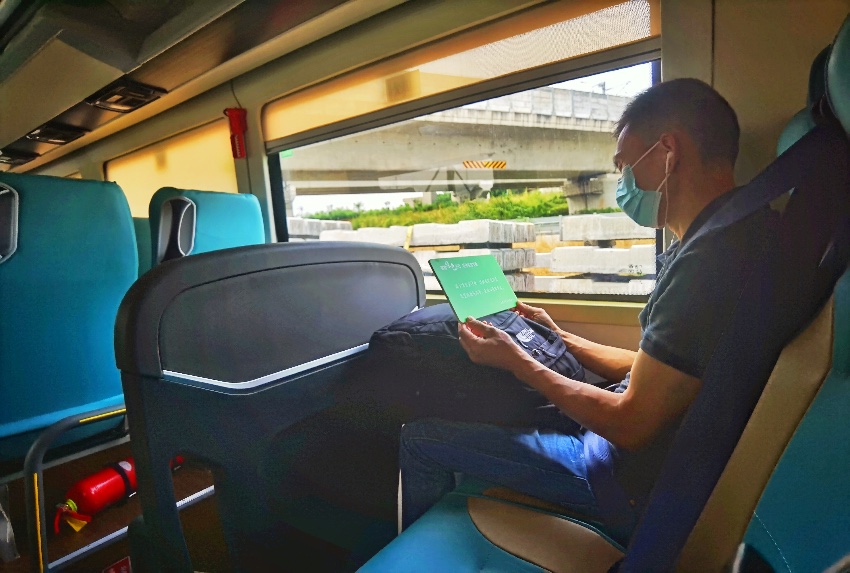乘客正在閱讀綠色出行宣傳卡片內容。成都交通運輸局供圖