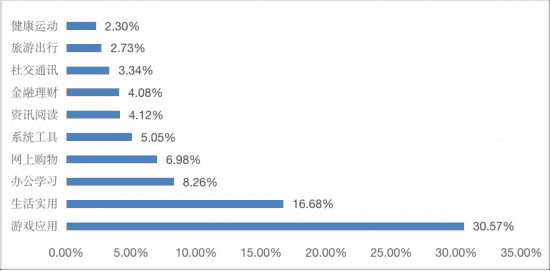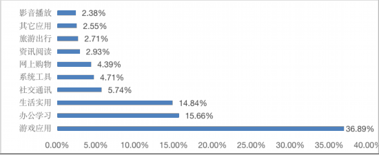 《報告》指出,若根據移動應用所屬功能來看,四川省移動應用可細分為游戲應用、生活實用、辦公學習、系統工具、網上購物等主要類型。其中,游戲類應用數量占四川省總量的30.57%,位居第一,遠高于其他類型;生活實用類應用數量占四川省總量的16.68%,位居第二;辦公學習類應用數量占四川省總量的8.26%,位居第三!斑@顯示出四川省移動應用主要集中在日常生活的娛樂、生活和學習方面,此類移動應用獲取個人信息較多,安全風險較大!笔∥W信辦有關負責人提醒到。