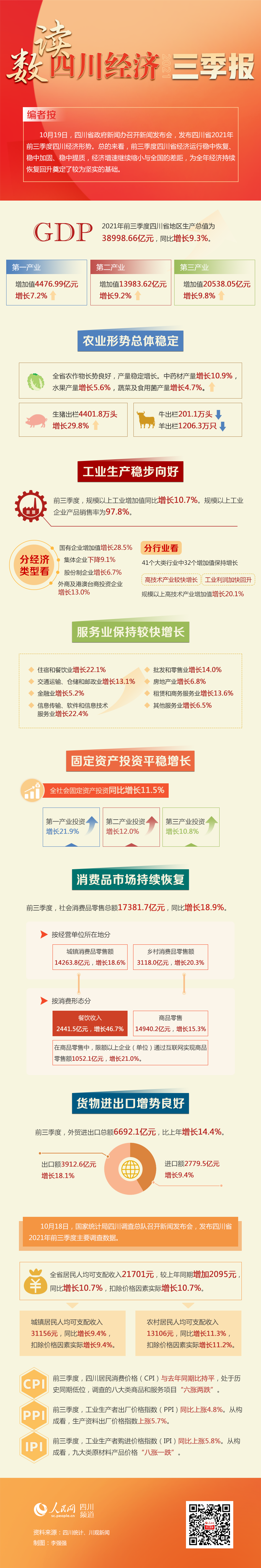 前三季度四川GDP總量38998.66億元,居民人均可支配收入21701元