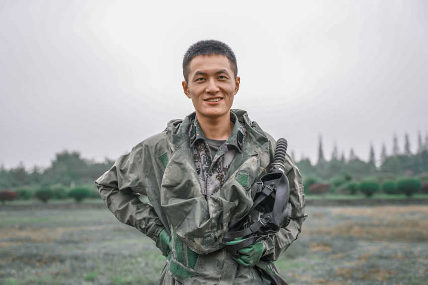 15公斤的防化裝備是汪保國在訓練場上最親密的伙伴。身著防化裝備第一時間沖進“沾染中心”采集第一手數據,是他的日常訓練內容。面對“毒魔”,汪保國的眼里總是迸發出一種堅毅。沖上去,這是他的選擇;履行職責,這是他的承諾,只因自己穿上了這身“橄欖綠”。